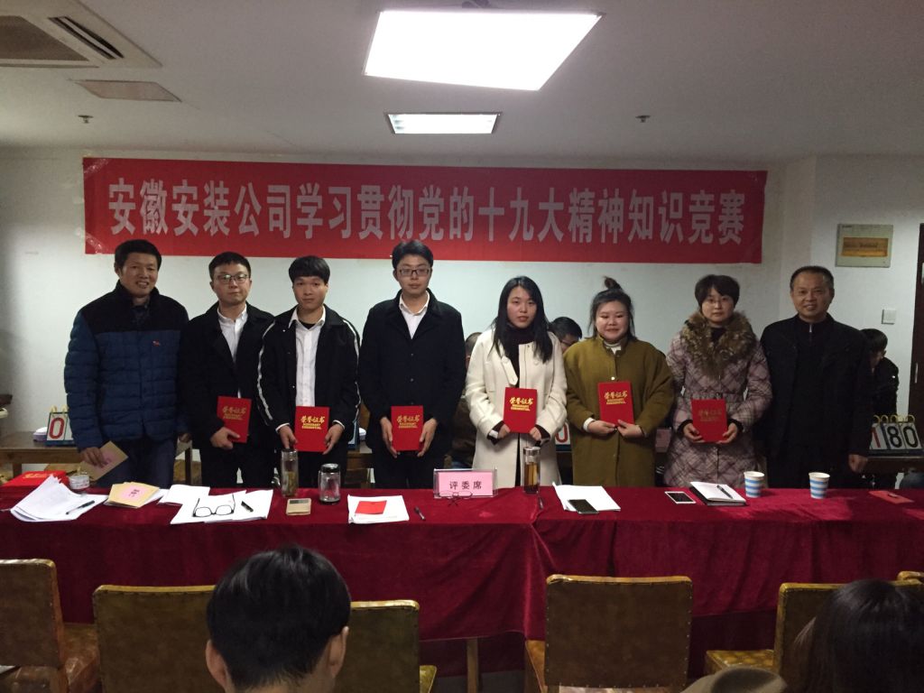 12月6日下午,安徽安裝公司學(xué)習(xí)貫徹黨的十九大精神知識(shí)競(jìng)賽成功舉辦。來(lái)自公司機(jī)關(guān)及所屬各分公司黨支部8支代表隊(duì)24名選手參加比賽。