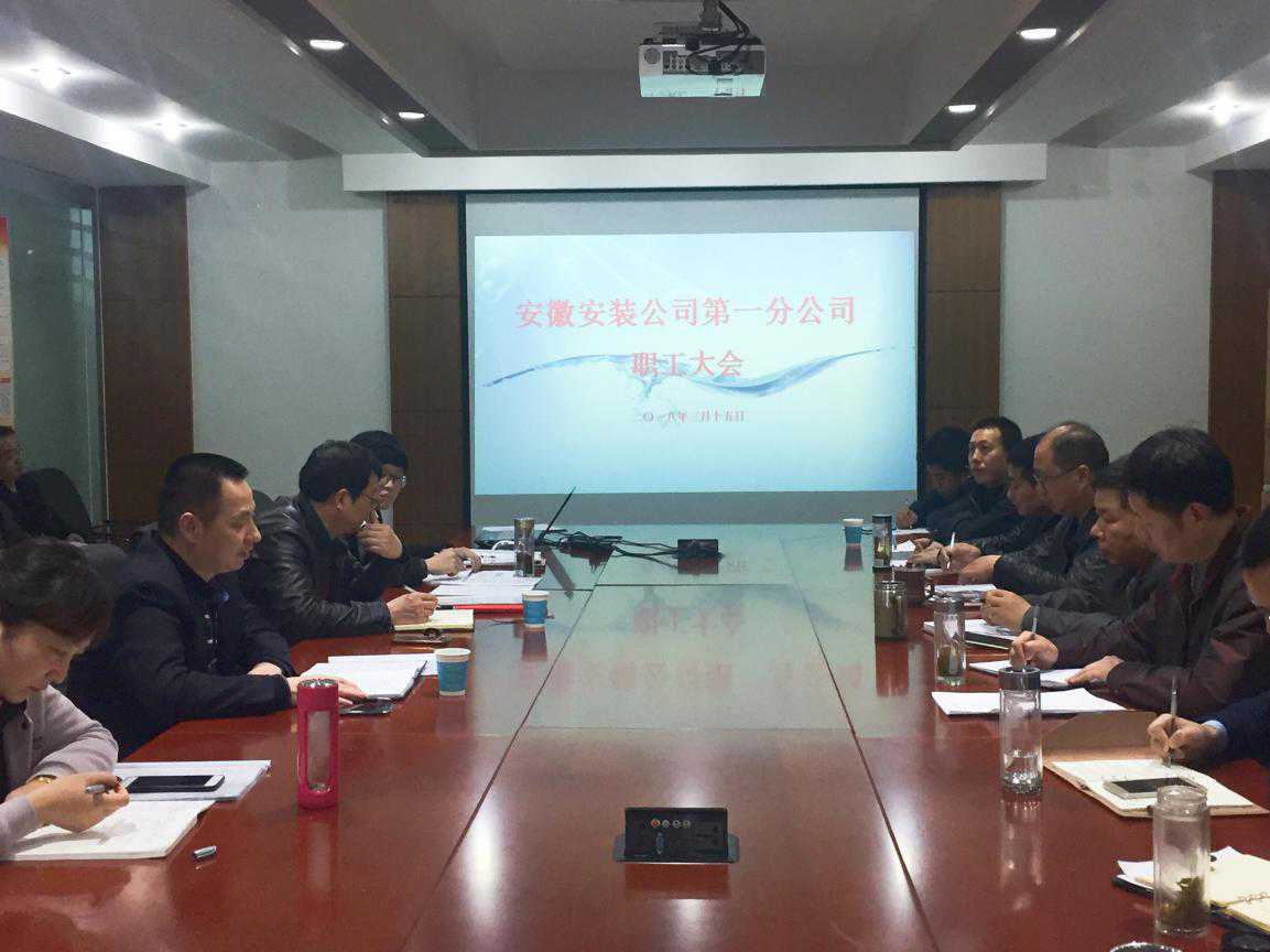 2018年3月15日,第一分公司在分公司機關(guān)召開2017年度職工大會。公司黨委書記、副總經(jīng)理胡六中,紀委書記、工會主席李寬旭,人力資源部經(jīng)理王敏等出席了會議,分公司機關(guān)全體人員及在肥項目部員工共36人參加了會議。會議由第一分公司黨支部書記胡迎東主持。