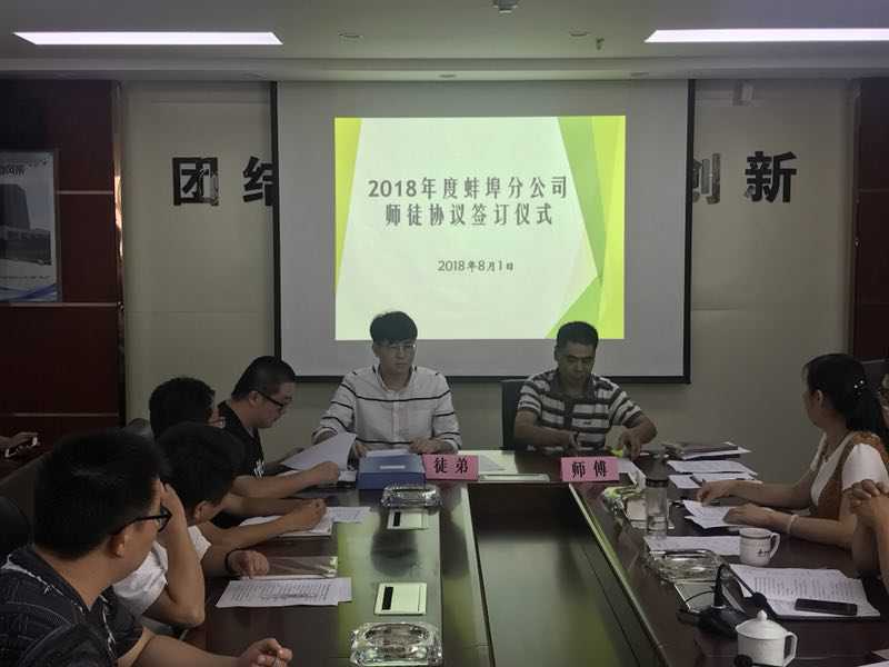 為了加快人才培養(yǎng),促進(jìn)崗位成才,2018年8月1日下午,蚌埠分公司舉辦了一場(chǎng)隆重的師徒協(xié)議簽訂儀式。分公司機(jī)關(guān)全體員工及項(xiàng)目部代表出席會(huì)議。會(huì)議由分公司工會(huì)主席程茂麗主持。