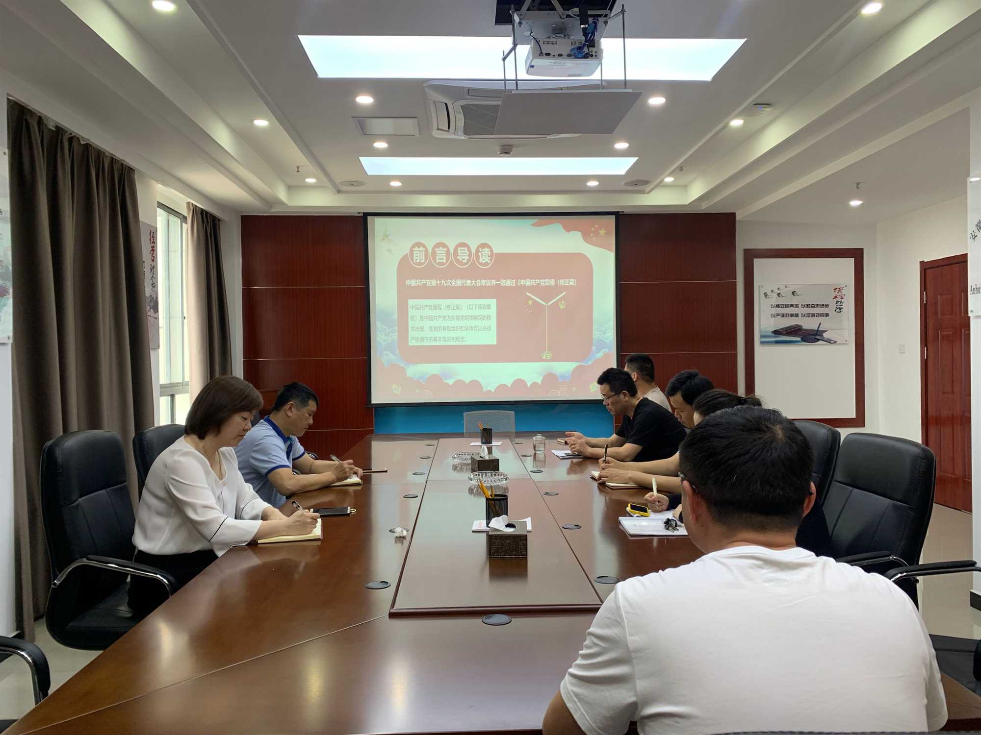 為積極落實(shí)安徽安裝公司黨委關(guān)于持續(xù)深入扎實(shí)學(xué)好用好黨章的通知,安慶分公司黨支部充分利用五月份黨員活動日,由分公司支部委員李雙江為全體黨員上了一堂專題黨課,帶領(lǐng)大家深入學(xué)習(xí)新黨章,幫助黨員了解掌握新黨章的變化內(nèi)容。