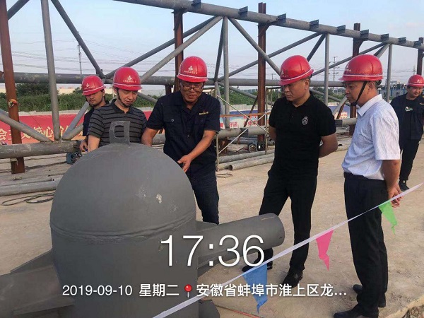 在蚌埠淮河水科院項目調(diào)研時,胡六中首先深入施工現(xiàn)場實地查看項目進展情況,認真聽取項目經(jīng)理張斌對項目工程概況、現(xiàn)場組織、工程進度、施工難點、重點等情況的介紹,并對項目存在的問題予以指導(dǎo)。他指出:淮河水科院項目屬于大跨度管桁架結(jié)構(gòu),目前正處于施工高峰期,具有一定的施工難度,他要求項目部,一要以現(xiàn)階段正在開展的勞動競賽活動為契機,團結(jié)一心,確保工期、安全、質(zhì)量;二要加強施工力量,確保形象進度,根據(jù)施工計劃倒排施工工期,兼顧項目成本;三要倡導(dǎo)項目經(jīng)理負責(zé)制,關(guān)注員工所思所想,注重加強項目團隊建設(shè);四要樹立品牌意識,確保該項目創(chuàng)建“黃山杯、安裝之星”等榮譽,同時做好項目二次經(jīng)營,要堅持“建一個項目,樹一個精品,交一方朋友,鞏固一方市場,培養(yǎng)一個團隊”;五要解放思想,正視困難,堅定信心。