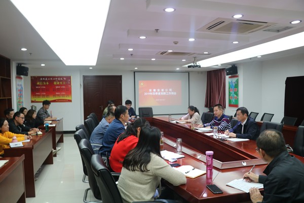 會(huì)上,所屬各黨支部圍繞扎實(shí)開(kāi)展“不忘初心、牢記使命”主題教育、推動(dòng)省委巡視反饋問(wèn)題整改、慶祝新中國(guó)成立70周年系列活動(dòng)、支部其他重點(diǎn)工作、支部中存在的不足及四季度主要工作計(jì)劃進(jìn)行交流匯報(bào)。隨后公司黨群部門(mén)對(duì)四季度主要工作進(jìn)行了布置。