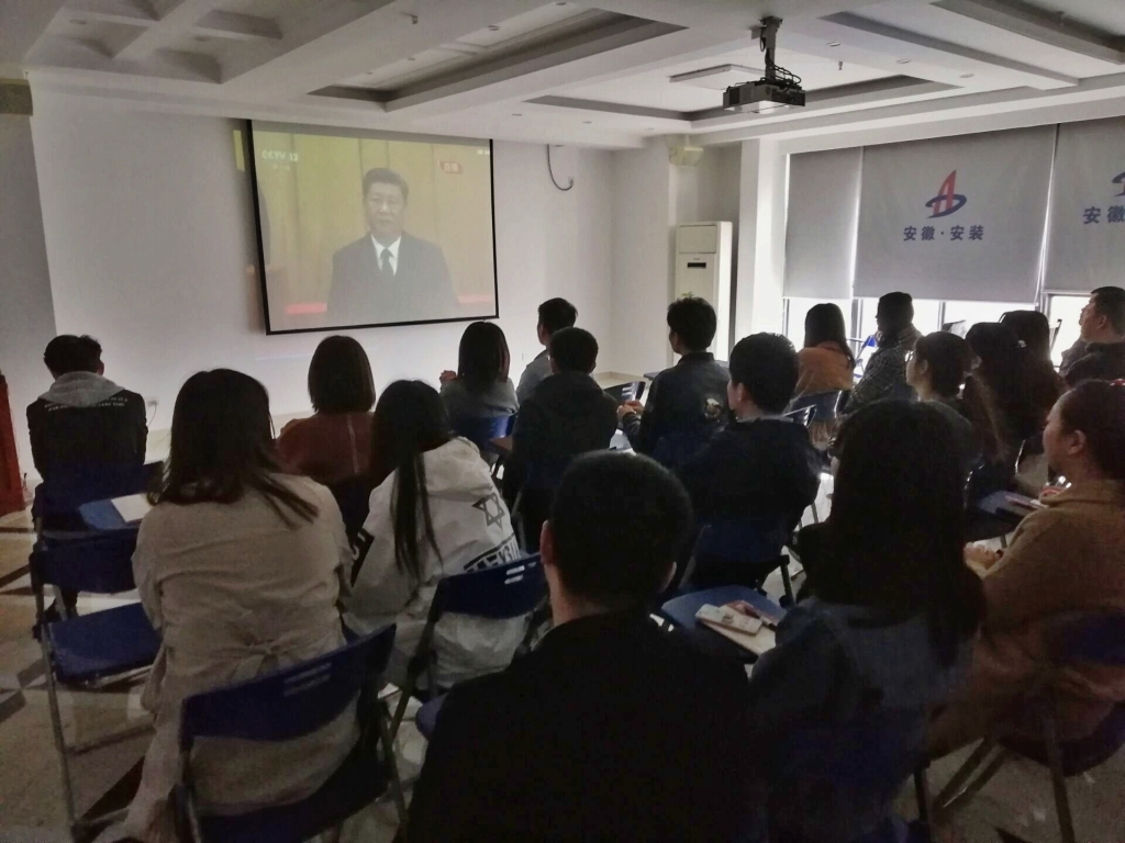 4月30日10時30分,紀(jì)念五四運(yùn)動100周年大會在人民大會堂舉行。安徽安裝團(tuán)委組織團(tuán)員青年集中收看了大會直播,大會在莊嚴(yán)雄偉的國歌中拉開序幕,習(xí)近平總書記發(fā)表重要講話。