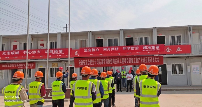 為確保年度各項目目標(biāo)任務(wù)順利完成,貫徹落實集團(tuán)和安裝公司兩級職代會及疫情防控、復(fù)工復(fù)產(chǎn)工作推進(jìn)會精神,3月21日上午,安徽安裝召開蕪湖宇培裝配生產(chǎn)基地項目“大干90天”勞動競賽動員會。公司黨委書記、董事長胡六中,紀(jì)委書記、工會主席李寬旭,合肥分公司領(lǐng)導(dǎo)班子成員、項目管理人員和施工班組參加了競賽動員會。