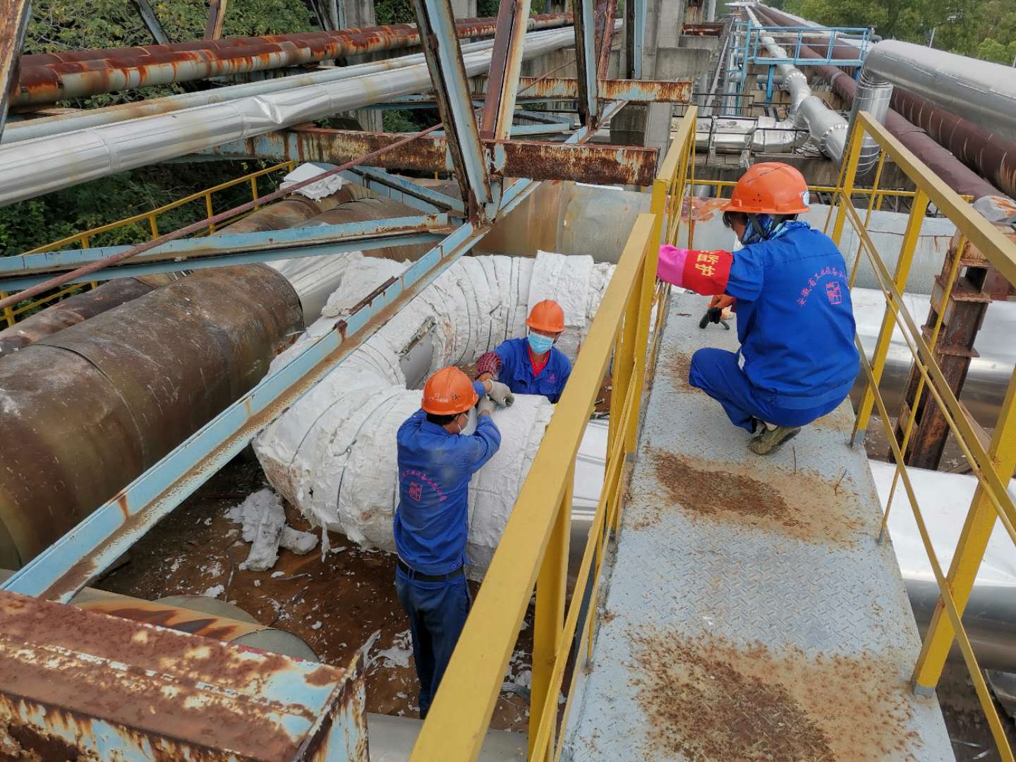 在安慶石化重污油罐尾氣治理項(xiàng)目上,工人們正在進(jìn)行管道保溫施工工作。分段管道的保溫施工按照不同吊裝地點(diǎn)合適程度而定,目前采用地面管道保溫施工,完成后留出焊縫及吊點(diǎn)位置,待吊裝后再及時(shí)進(jìn)行焊縫及吊點(diǎn)保溫施工工作。