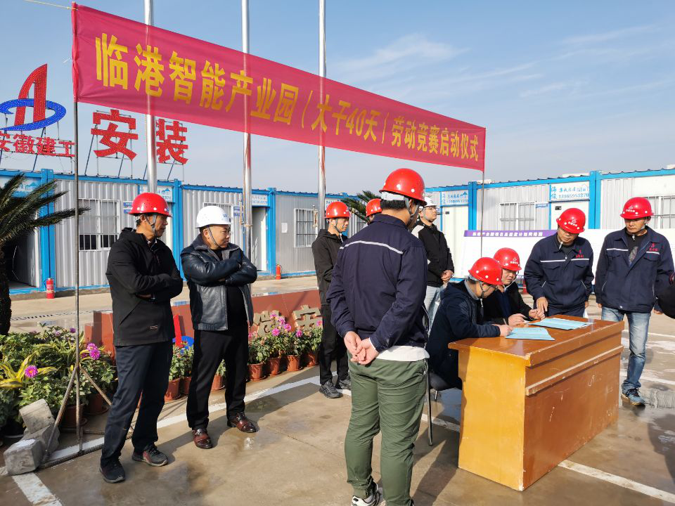 為確保年度各項(xiàng)目標(biāo)任務(wù)順利完成,貫徹落實(shí)集團(tuán)公司開(kāi)展“戰(zhàn)疫情、搶工期、保目標(biāo)、促超產(chǎn)”為主題勞動(dòng)競(jìng)賽活動(dòng)精神,2020年11月19日上午,安徽安裝召開(kāi)蚌埠臨港項(xiàng)目“大干40天”勞動(dòng)競(jìng)賽動(dòng)員會(huì)。公司紀(jì)委書(shū)記、工會(huì)主席李寬旭,公司相關(guān)部門(mén)負(fù)責(zé)人,業(yè)主現(xiàn)場(chǎng)派駐代表李先鋒,總監(jiān)代表姚明,項(xiàng)目勘察單位、設(shè)計(jì)單位代表,蚌埠分公司領(lǐng)導(dǎo)班子成員,項(xiàng)目管理人員和勞務(wù)單位共計(jì)50余人參加活動(dòng)。