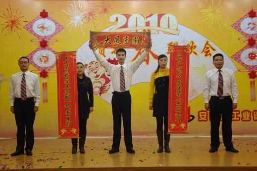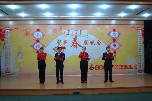 公司王軍邦總經(jīng)理代表公司黨政領(lǐng)導(dǎo)班子致新年賀詞,感謝一年來上級領(lǐng)導(dǎo)的大力支持和關(guān)懷,感謝全體員工的辛勤付出和熱愛。伴隨著優(yōu)美的旋律,聯(lián)歡會在舞蹈《好運(yùn)來》中正式拉開序幕,火紅的扇子,舞出了我們共同的期盼;詩朗誦《承諾》,聲情并茂、鏗鏘有力的述說了省安三年來發(fā)生的巨大變化和取得的輝煌成績,博得了在場觀眾的陣陣掌聲。安慶分公司的戲劇小品《比翼雙飛》與合肥項目部的男聲獨唱《恭喜發(fā)財》同獲一等獎,蚌埠分公司的說唱《三載巨變展新貌》和經(jīng)理辦的小品《昨天今天 明天》同獲二等獎。