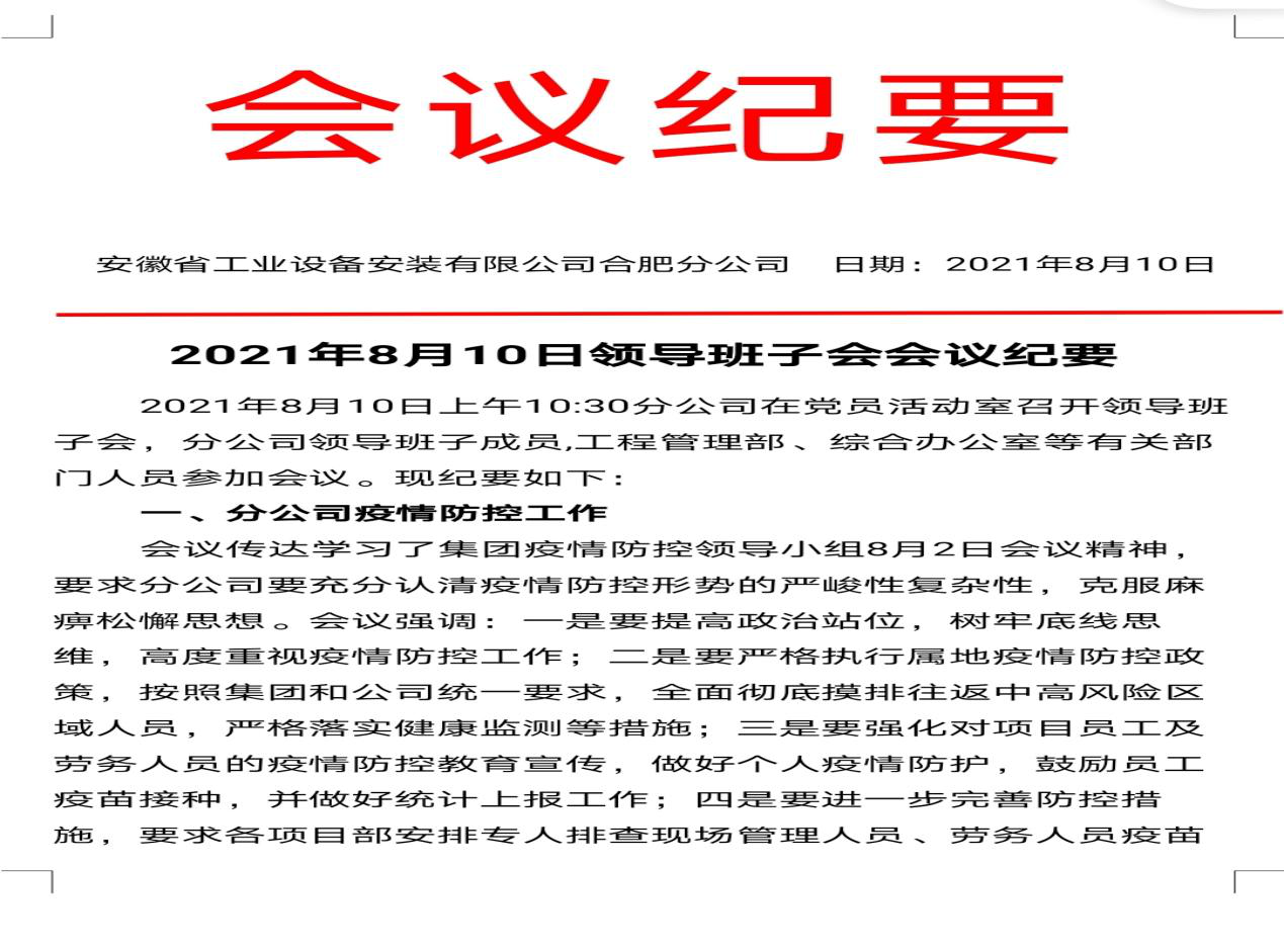 為確保疫情防控工作落實(shí)到位,合肥分公司積極行動(dòng),多措并舉,一是安排日常防疫排班表,壓實(shí)疫情防控具體責(zé)任;二是及時(shí)排查分公司員工及項(xiàng)目施工人員出行情況;三是定期安排人員對(duì)機(jī)關(guān)及項(xiàng)目辦公區(qū)域、食堂、衛(wèi)生間等進(jìn)行消毒殺菌,并及時(shí)為機(jī)關(guān)及各項(xiàng)目員工分發(fā)口罩、洗手液、消毒棉片等防疫物品;四是強(qiáng)化對(duì)機(jī)關(guān)和項(xiàng)目人員的疫情防控教育宣傳,做好個(gè)人疫情防護(hù),鼓勵(lì)員工疫苗接種,截至目前,分公司除去不適合接種疫苗人員,其他人員接種率達(dá)到100%。