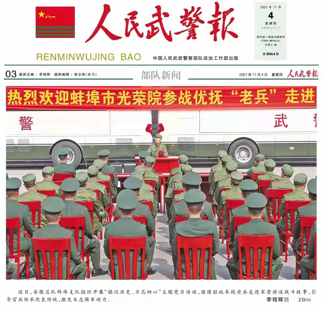 近日,《中國軍視網(wǎng)》《人民武警報》專題報道安徽安裝蚌埠分公司年飛同志作為參戰(zhàn)退伍老兵講授專題黨課。