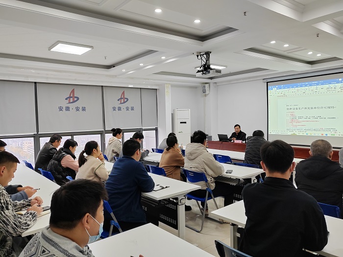 為進(jìn)一步提升公司員工對(duì)特種設(shè)備許可的理解,切實(shí)做好壓力管道(GC1)許可換證迎審材料準(zhǔn)備工作。11月22日上午,安徽安裝公司在15樓職工之家舉辦“特種設(shè)備生產(chǎn)和充裝單位許可規(guī)則TSG07-2019”專題學(xué)習(xí)培訓(xùn)。培訓(xùn)邀請(qǐng)了安徽省特種設(shè)備檢測(cè)院原總工、正高級(jí)工程師許久勝授課。公司機(jī)關(guān)、所屬各單位相關(guān)部門人員約50余人參加培訓(xùn)。培訓(xùn)以現(xiàn)場(chǎng)加視頻的形式召開。