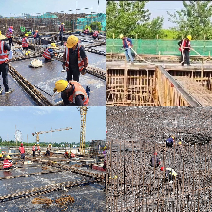 面對(duì)工期緊、任務(wù)重、壓力大,現(xiàn)場(chǎng)困難重重的實(shí)際情況,項(xiàng)目部多次召開專題會(huì)議,統(tǒng)一思想,倒排施工計(jì)劃,并積極開展勞動(dòng)競(jìng)賽。為確保競(jìng)賽目標(biāo)實(shí)現(xiàn),項(xiàng)目部領(lǐng)導(dǎo)班子實(shí)行分工包保制,堅(jiān)持靠前指揮,嚴(yán)控各個(gè)施工節(jié)點(diǎn),同時(shí),項(xiàng)目經(jīng)理對(duì)項(xiàng)目部成員也做了精細(xì)化分工調(diào)整,劃分區(qū)域、責(zé)任到人;對(duì)施工班組一條龍服務(wù),一站式解決。針對(duì)重難點(diǎn)問(wèn)題做到急速反饋、急速解決,及時(shí)處理現(xiàn)場(chǎng)各類問(wèn)題,確?!案魉酒湄?zé)、高效快捷、風(fēng)險(xiǎn)可控”。在搶抓工程進(jìn)度的同時(shí),項(xiàng)目部還嚴(yán)抓現(xiàn)場(chǎng)安全質(zhì)量管理。在常態(tài)化做好日常工作同時(shí),相繼開展了安全警示教育、觸電事故安全演練、砌筑、抹灰技能大賽等活動(dòng),并積極申報(bào)QC成果,其中《提高池壁與筏板連接處混凝土一次性成型率》QC榮獲省級(jí)二等獎(jiǎng),多措并舉加快推進(jìn)了項(xiàng)目建設(shè)。