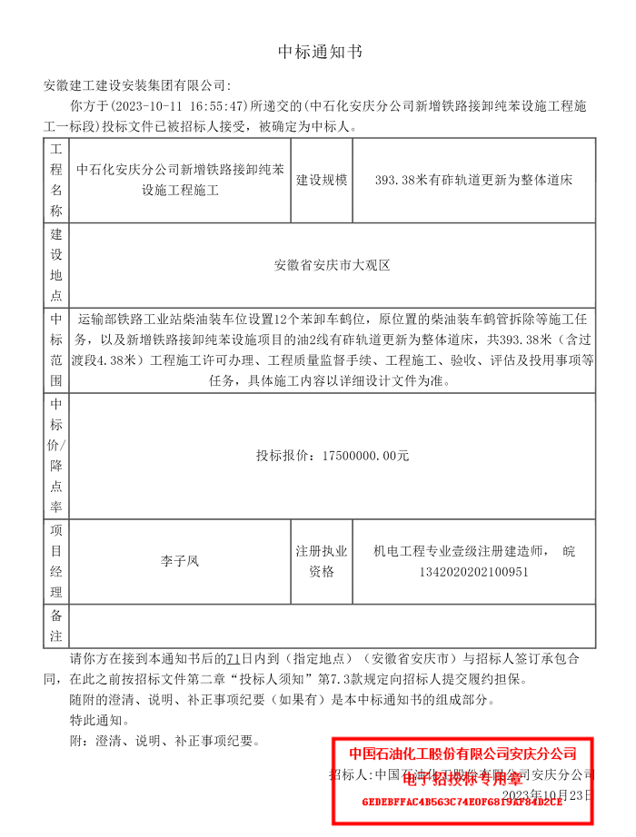 該項目擬對中石化安慶分公司運輸部鐵路工業(yè)站柴油裝車位設(shè)置12個苯卸車鶴位,以及新增鐵路接卸純苯設(shè)施項目的油2線有砟軌道更新為整體道床,共 393.38 米,計劃工期為71天。此次中標是2023年以來分公司繼化工園區(qū)儲運部六罐區(qū)重大安全風(fēng)險消減治理項目以及2023年5月-2025年4月工程建設(shè)項目施工總承包框架協(xié)議項目兩個項目中標后,連續(xù)在中石化安慶分公司中標的第三個項目,也是分公司中標的首個鐵路整體道床施工項目。