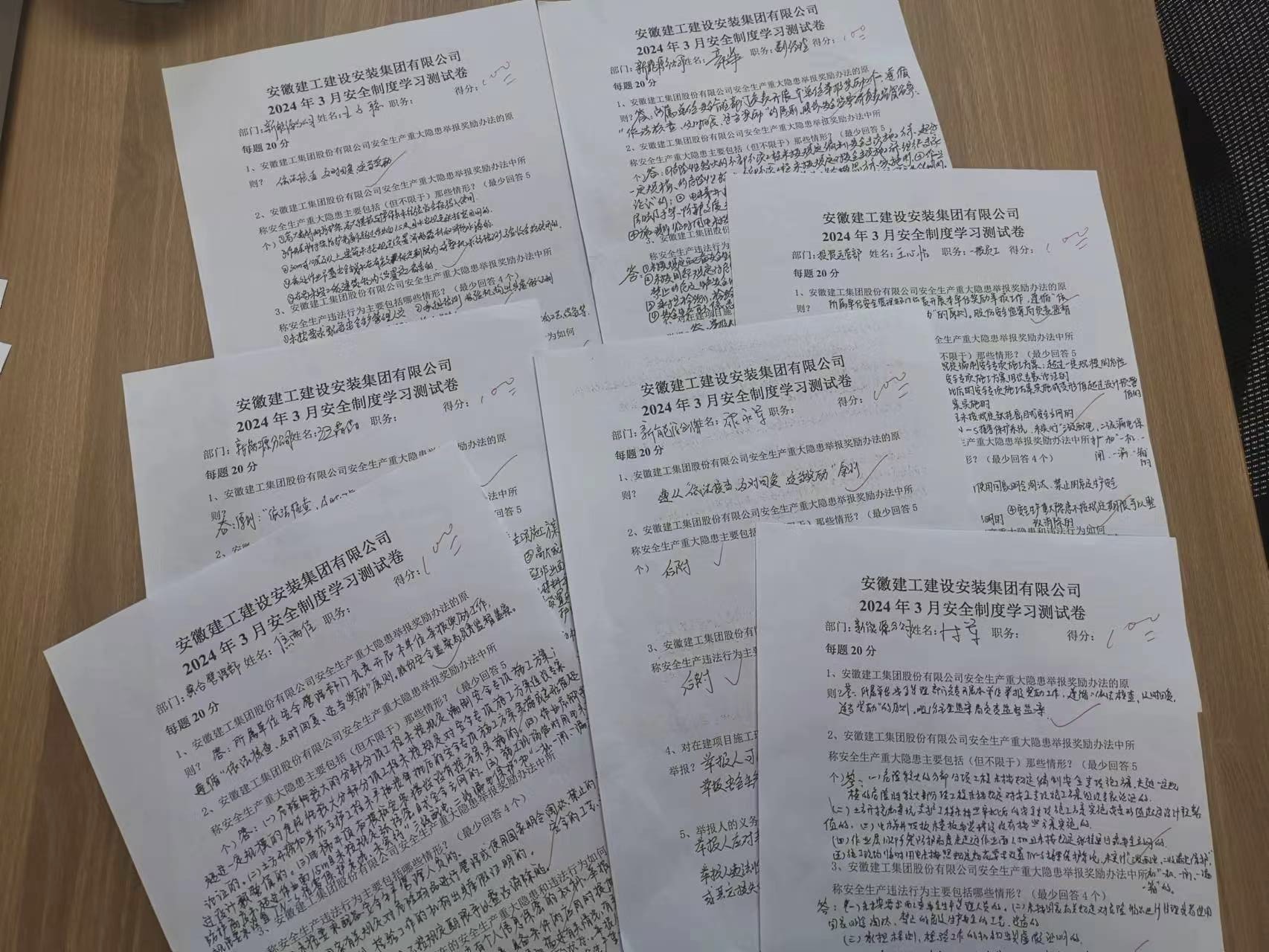 會(huì)上,郭萬(wàn)升帶領(lǐng)全體員工集中學(xué)習(xí)了《安徽建工集團(tuán)股份有限公司安全生產(chǎn)重大隱患舉辦獎(jiǎng)勵(lì)辦法》,他強(qiáng)調(diào)分公司全體員工要扎實(shí)工作,注重細(xì)節(jié),堅(jiān)持“安全第一,預(yù)防為主,綜合治理,以人為本”十六字方針,以良好的精神面貌和充沛的精力,全身心投入到安全生產(chǎn)及各項(xiàng)工作中。會(huì)議結(jié)束后,分公司以書(shū)面考試形式對(duì)全員進(jìn)行了測(cè)試,以鞏固學(xué)習(xí)成果。