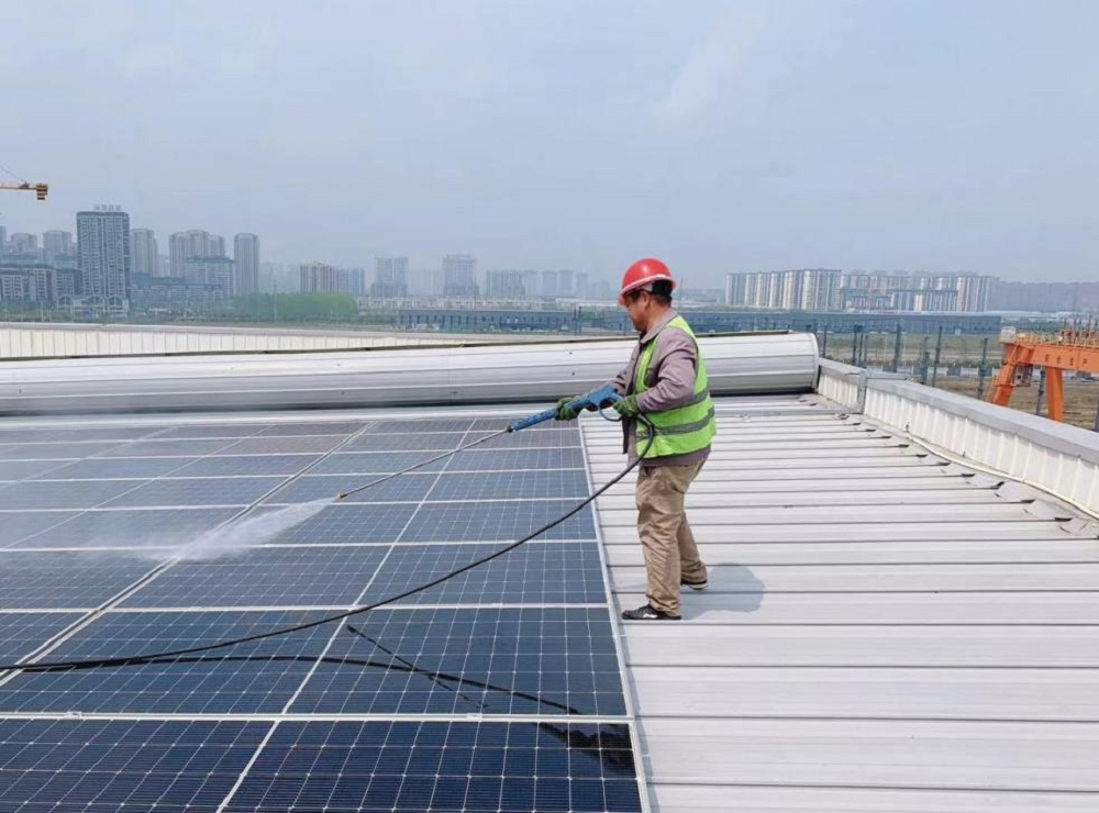“灰層遮擋了光伏板的主體,而此刻我手中的高壓水槍,猶如一把犀利的掃帚,能夠快速清除板面的泥土和污垢,既節(jié)省了人力和時(shí)間,又進(jìn)一步提高了發(fā)電效益。清洗后的光伏板,仿佛獲得了源源不斷的動(dòng)力,不知疲倦地輸出著清潔能源?!?/span>