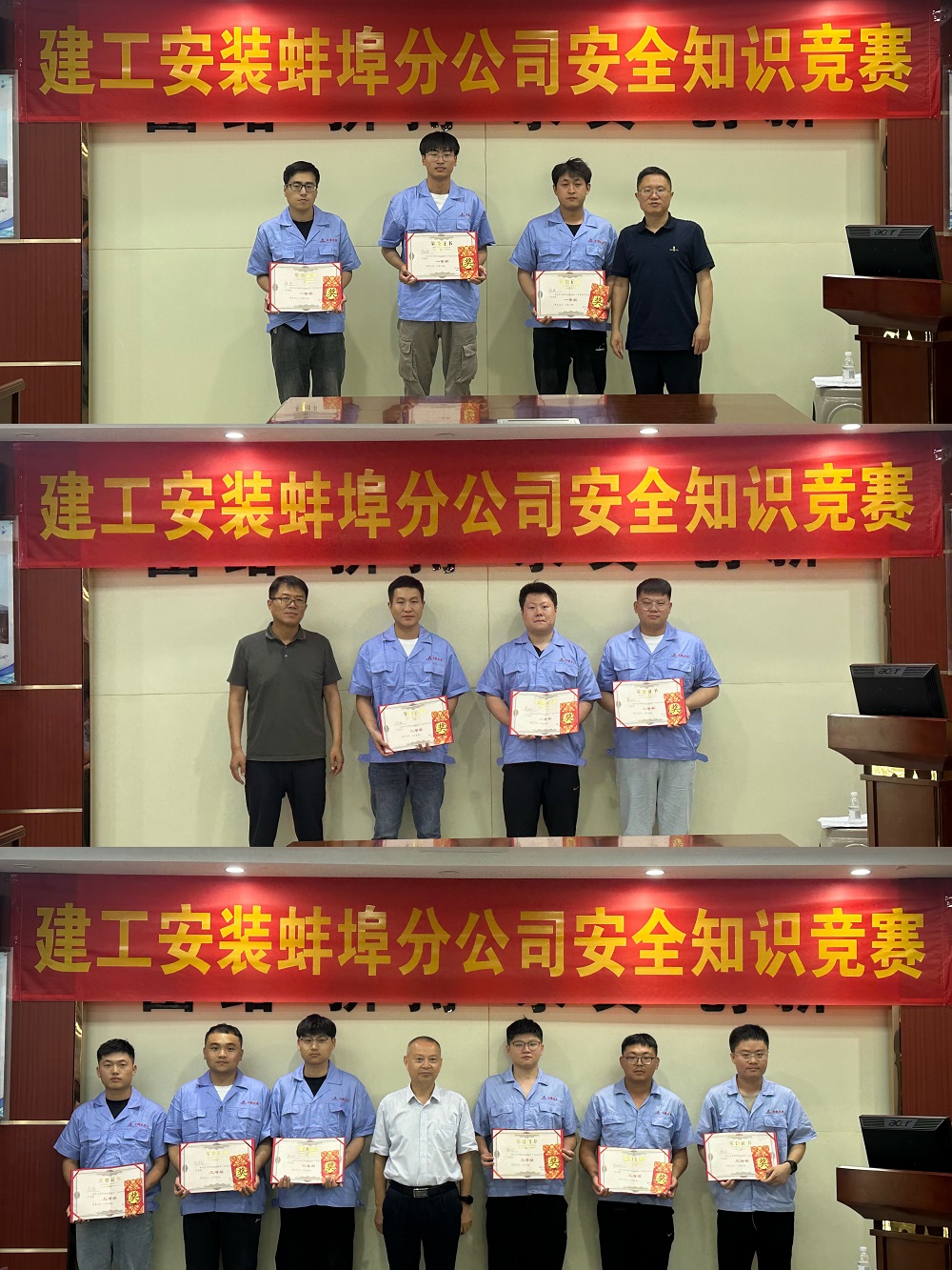 比賽過程中,各參賽選手精神飽滿、熱情高漲、反應迅速、機智應答,充分展現(xiàn)了選手們扎實的安全知識水平和良好的精神面貌。同時,為調動現(xiàn)場觀賽人員參與活動的積極性,賽程中途,還組織了互動環(huán)節(jié),由現(xiàn)場觀賽人員搶答,把氣氛推向高潮。經過三輪精彩而緊張的角逐,最終宿州深巖項目代表隊榮獲一等獎;阜南項目及渦陽項目聯(lián)合代表隊榮獲二等獎;污水廠項目、輝隆項目代表隊榮獲三等獎。