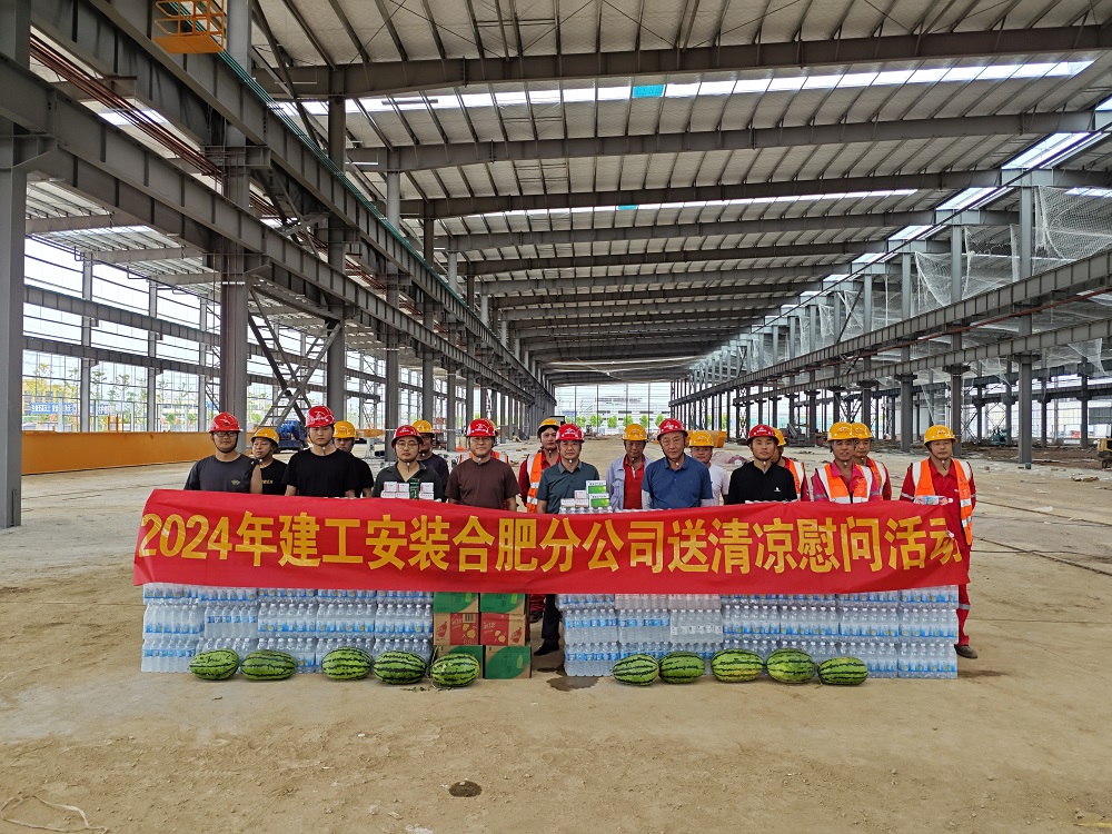 盛夏已至,驕陽似火,建工安裝合肥分公司省內(nèi)外各項目現(xiàn)場掀起“沖刺三季度”大干熱潮。在合理組織施工的同時,分公司多措并舉,通過聯(lián)合屬地項目部開展送清涼等慰問活動,為建設(shè)者安全健康提供保障。