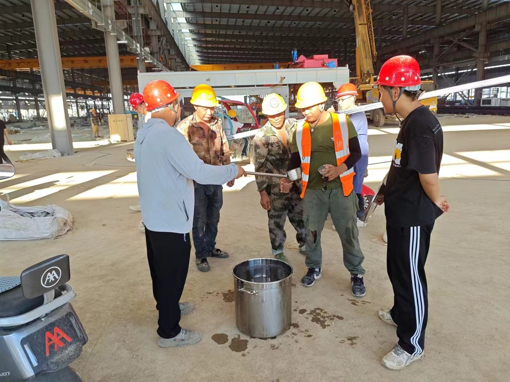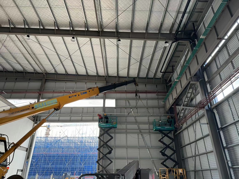 目前項(xiàng)目施工現(xiàn)場(chǎng)100多名工人各司其職,進(jìn)行2#重鋼車間廠房橋架、消防系統(tǒng)、氣體管道、裝修、圍護(hù)結(jié)構(gòu)、門窗、通風(fēng)氣樓、設(shè)備基礎(chǔ)等安裝。同時(shí)為應(yīng)對(duì)持續(xù)高溫天氣,項(xiàng)目部合理安排作業(yè)時(shí)間,做好后勤保障工作,現(xiàn)場(chǎng)不間斷巡查時(shí)刻關(guān)注工人狀態(tài),在確保施工人員健康和安全的前提下,全力以赴加快廠房項(xiàng)目建設(shè)進(jìn)度,預(yù)計(jì)7月26日前完成大部分項(xiàng)目?jī)?nèi)容的施工任務(wù)。