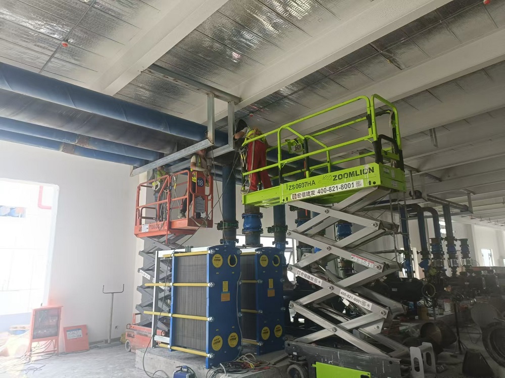目前項(xiàng)目施工現(xiàn)場100多名工人各司其職,正在進(jìn)行PO1廠房1-3層的水電、動力空調(diào)水、裝飾裝修、通風(fēng)、保潔、保溫等相關(guān)施工作業(yè)。與此同時,頂樓冷水機(jī)房管道、屋面中溫冷水機(jī)組、冷卻塔、純水機(jī)房的安裝施工也在同步推進(jìn)。