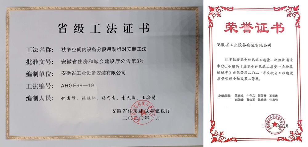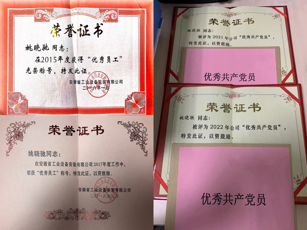 在繁忙的工作之余,姚曉馳對(duì)專業(yè)知識(shí)的探索與熱愛從未有片刻停歇。他仿若一位求知若渴的行者,積極主動(dòng)地在知識(shí)的海洋中破浪前行,持續(xù)拓寬并深化自身的知識(shí)體系。他參與研發(fā)的《狹窄空間內(nèi)設(shè)備分段吊裝組對(duì)安裝工法》成功榮獲安徽省住房和城鄉(xiāng)建設(shè)廳頒發(fā)的省級(jí)工法稱號(hào),《提高電伴熱施工質(zhì)量一次驗(yàn)收通過率》也榮獲了安徽省工程建設(shè)質(zhì)量管理小組成果三等獎(jiǎng)。
