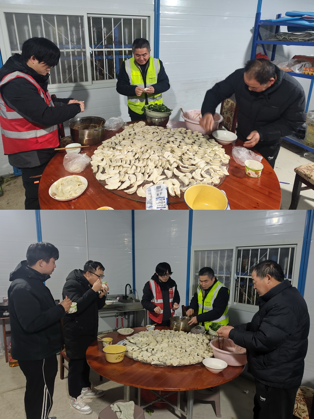 在新橋智能制造產(chǎn)業(yè)園一階段一標項目機電安裝工程項目部,一場同樣歡樂的包餃子活動也在如火如荼地進行著。項目部的員工們齊聚一堂,大家分工合作,有的負責調(diào)餡,確保餡料的口味恰到好處;有的負責擺放餃子,將包好的餃子整齊地排列在托盤上。雖然大家都很忙碌,但空氣中洋溢著歡聲笑語。大家一邊包餃子,一邊交流著項目上的工作進展和生活趣事,氛圍融洽和諧。