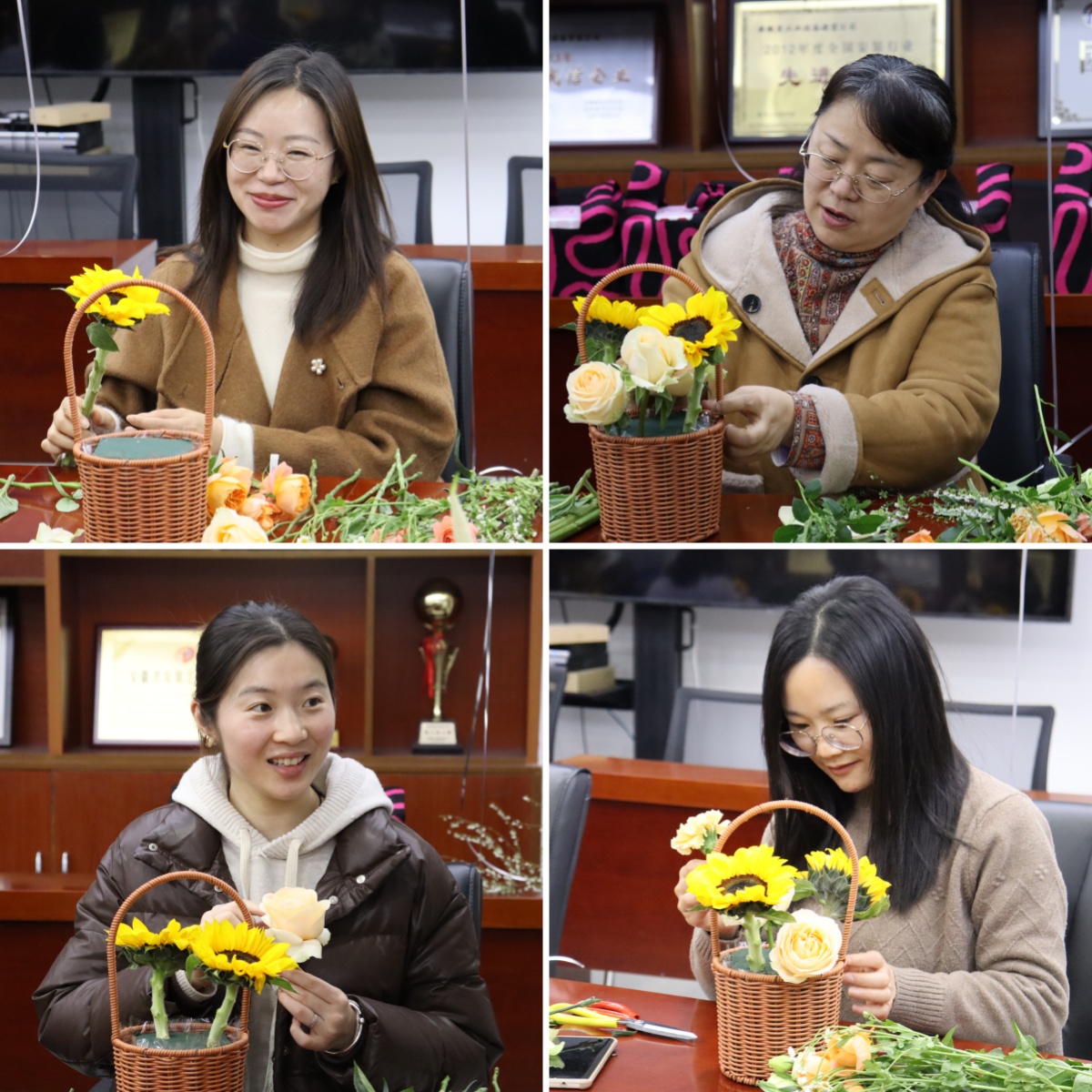 活動現(xiàn)場花香四溢,充滿著春天的氣息,專業(yè)花藝師從花材特性、色彩美學到造型構(gòu)思向大家進行了系統(tǒng)講解并進行了現(xiàn)場演示。女職工們興致盎然、躍躍欲試,充分發(fā)揮自己的想象力,以高漲的熱情投入到插花創(chuàng)作中,紛紛化身“春日設計師”,將玫瑰的熱烈、百合的芬芳、向日葵的陽光巧妙組合,在修剪與構(gòu)思中展現(xiàn)女性的細膩匠心。大家一邊插花創(chuàng)作,一邊互相交流著自己的想法和創(chuàng)意,現(xiàn)場充滿了歡聲笑語、其樂融融。
