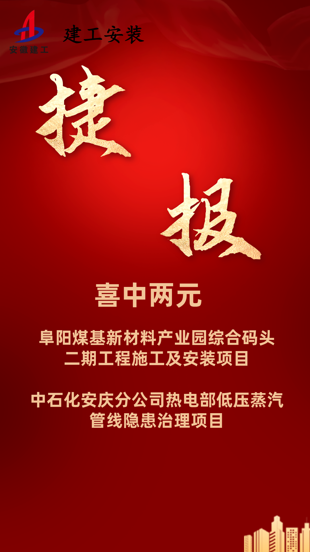 近期,建工安裝喜中兩元,成功中標(biāo)阜陽(yáng)煤基新材料產(chǎn)業(yè)園綜合碼頭二期工程施工及安裝項(xiàng)目以及中石化安慶分公司熱電部低壓蒸汽管線隱患治理項(xiàng)目,中標(biāo)總金額5400萬(wàn)元。