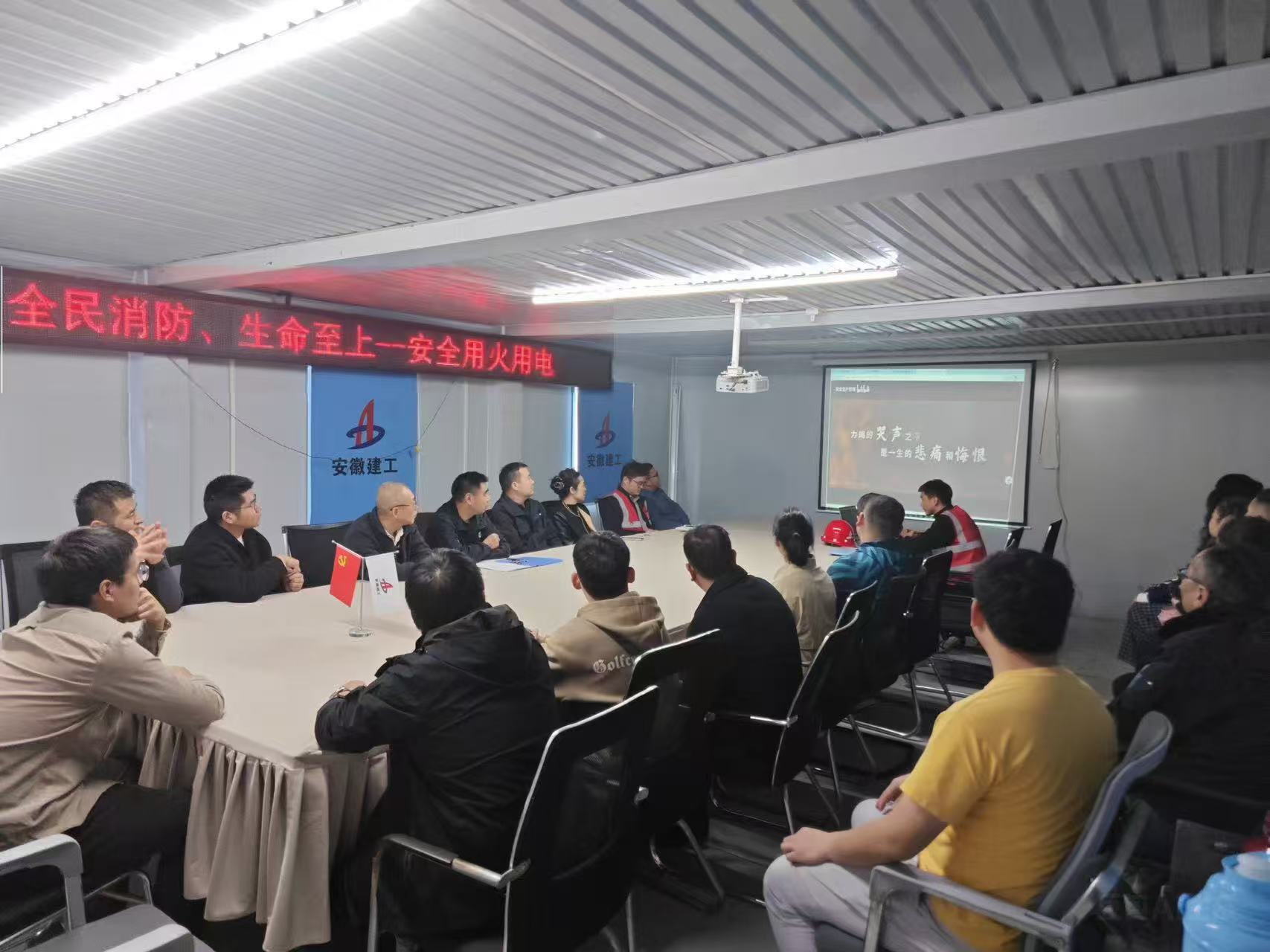 響應(yīng)2025年“全民消防、生命至上——安全用火用電”消防月號(hào)召,11月10日下午,建工安裝公路公司在蘇滁文體中心施工項(xiàng)目部組織消防應(yīng)急演練,機(jī)關(guān)及在滁項(xiàng)目部共30余人參加。